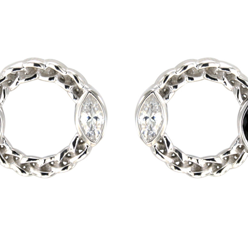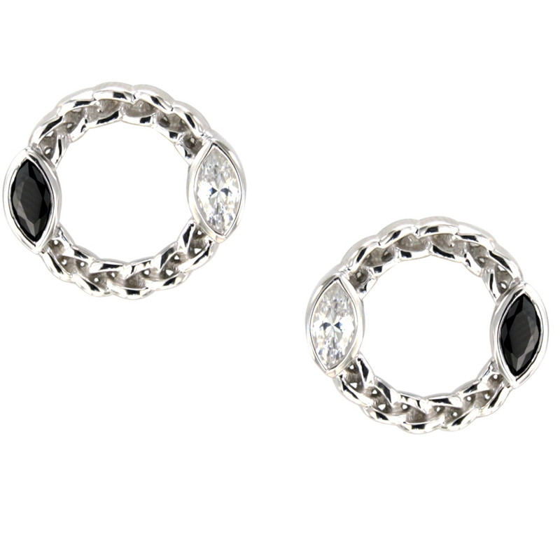 Boucles D Oreilles Cercle En Argent 925 Orne De Cristaux Swarovski Blanc Et Noir Femme Pendants Maty