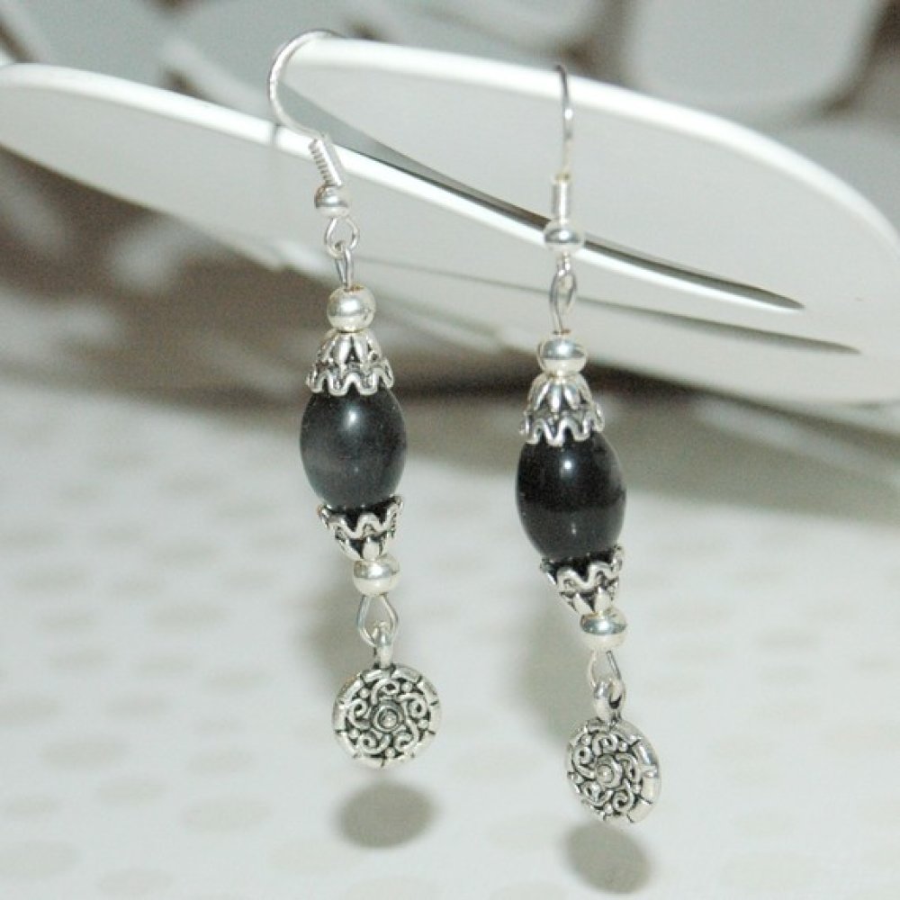 Boucles D Oreilles Noir Avec Crystal De Swarovski Et Perles Brodees