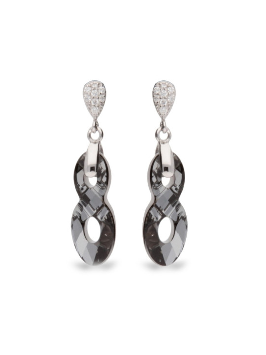 Boucles D Oreilles Femme Pendantes Swarovski Infinity Metal Rhodie Et Cristaux Pendantes Edora