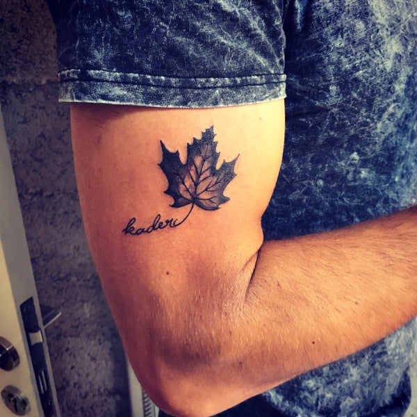 Une Feuille D Erable En Tatouage Sur Le Biceps Graphicaderme