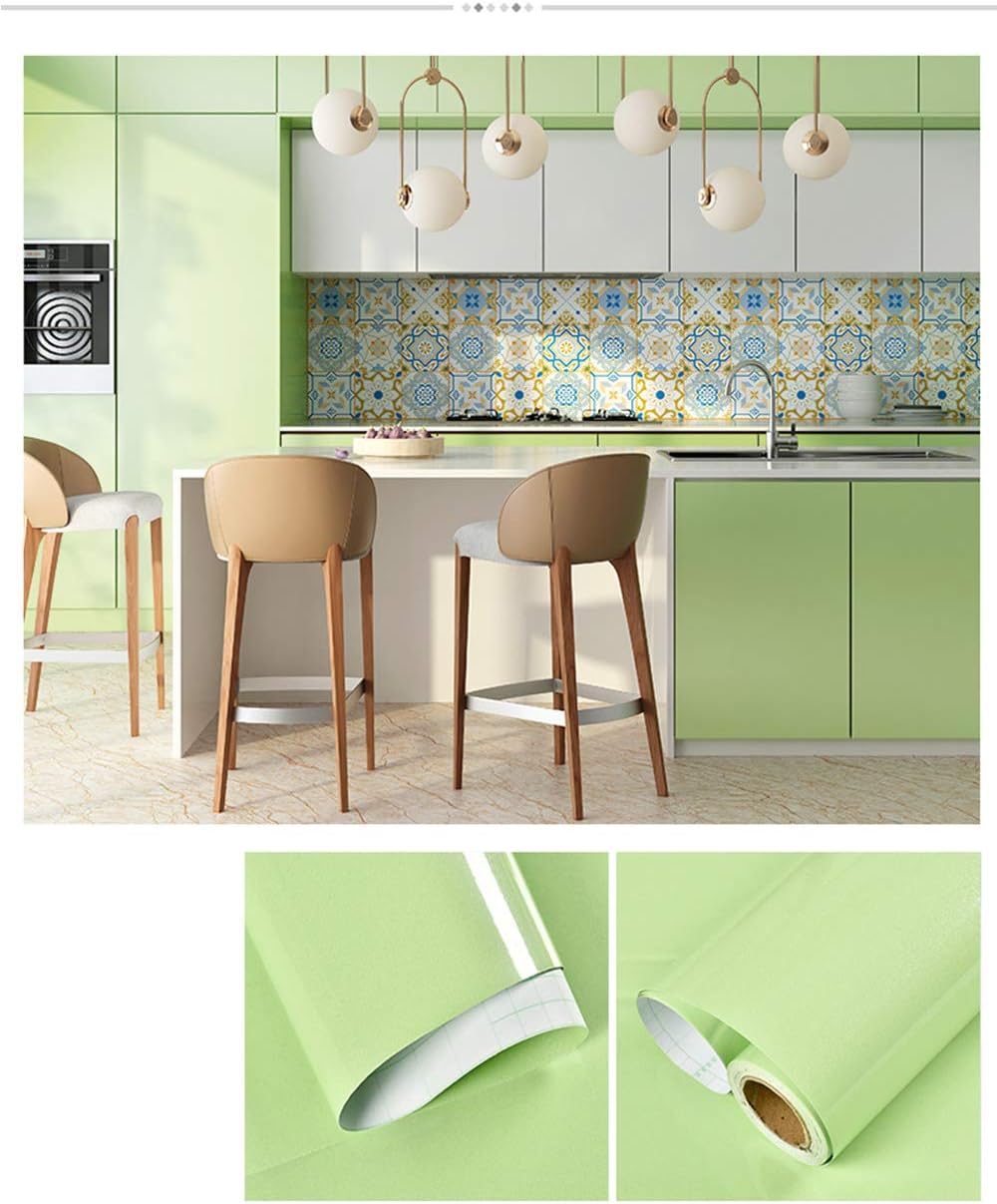 Kinlo 5 0 61m Papier Peint Auto Adhesif Vert Claire Armoire De Cuisine En Pvc Impermeable Style Moderne Stickers Autocollant Muraux Etanche Decoration Chambre Salon Meuble Amazon Fr Cuisine Maison