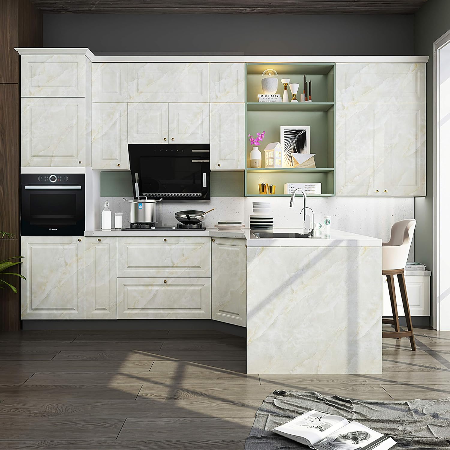 Concus T Marbre Contact Papier Effet Marbre Etanche Meubles Cuisine Comptoir Decoration Autocollant Vinyle Auto Adhesif Tableau Reglage Meuble Mural Autocollant Ange Blanc Clair Vert 60cm 300cm Cuisine Maison Stickers Meubles