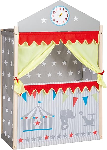 Roba Theatre Theatre De Marionnettes Avec Horloge Bois Massif Et Revetement En Tissu Amazon Fr Jeux Et Jouets