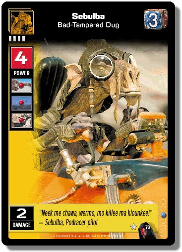 Star Wars Young Jedi Ccg Menace Of Darth Maul Sebulba Bad Tempered Dug 73