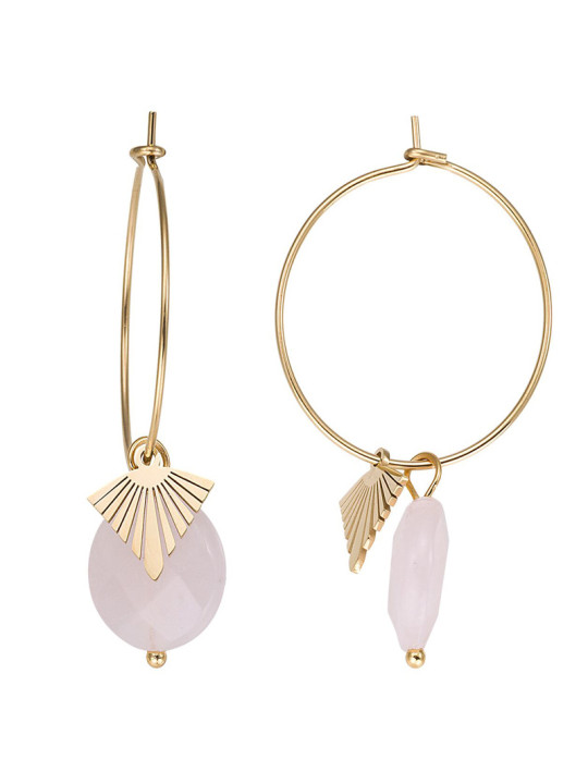 Boucles D Oreilles Dore Jaune Et Pierres Roses