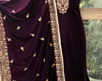 Pakistani Velvet Salwar Kameez With Plushi Shawl Embroidered Unstitched 35 00 Picclick Uk