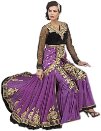 Rehsha Women S Pakistani Crepe Georgette Velvet Salwar Kameez Purple Amazon Co Uk Clothing