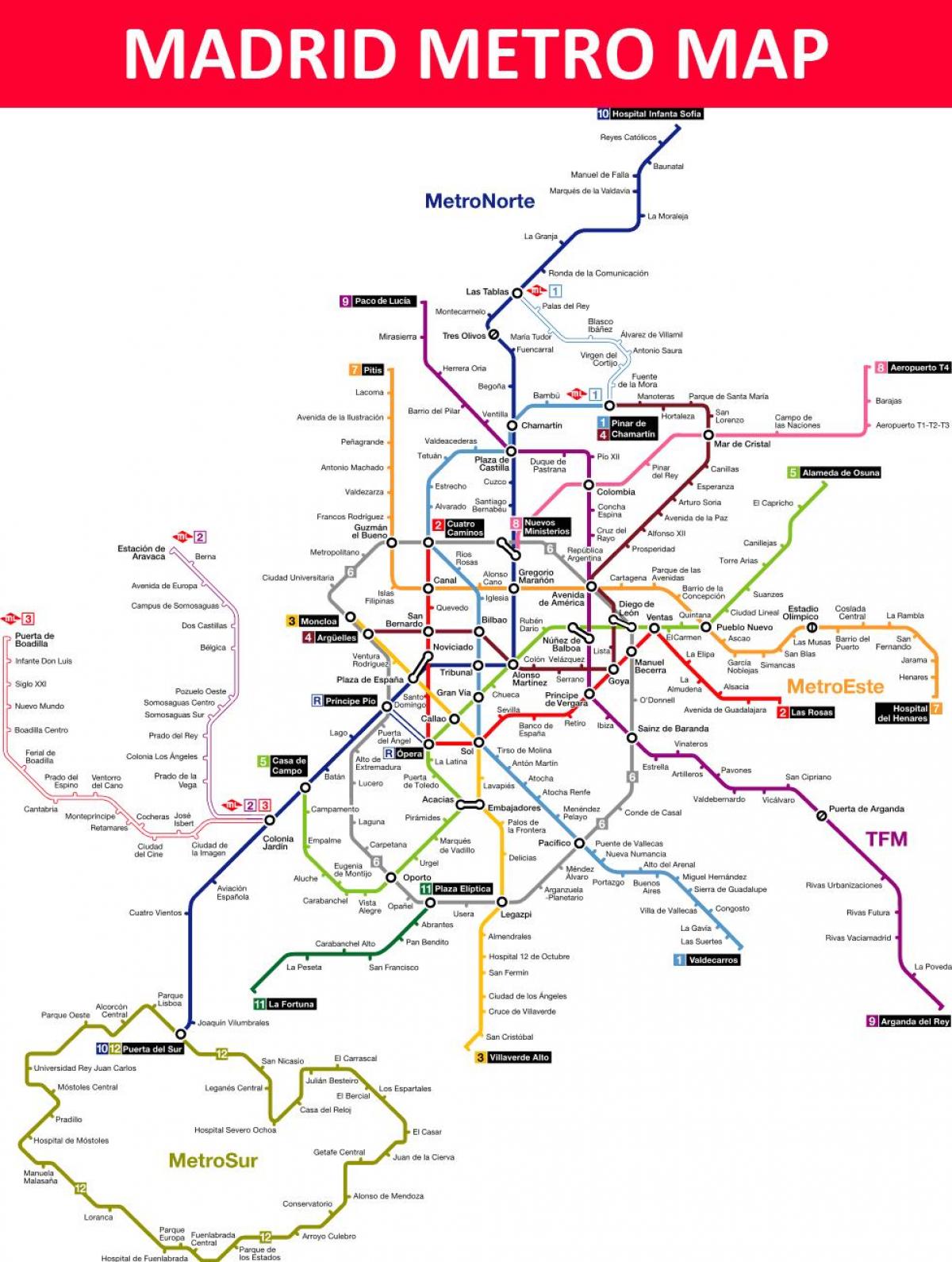 The Madrid Metro (Spanish Metro de Madrid) is a rapid transit system serving the city of Madrid, capital of SpainThe system is the 12th longest rapid transit system in the world, with a total length of 293 km (1 mi) Its growth between 1995 and 07 put it among the fastest growing networks in the world at the time, rivaling many Asian metros such as the Shanghai Metro, Guangzhou Metro. Les dimensions de cette carte du métro de Madrid 800 X 862 pixels, taille du fichier Bytes Vous pouvez ouvrir, télécharger et imprimer la carte en cliquant sur la carte cidessus ou suivez ce lien link. 10 journeys metro pass for 12€* you can travel everywhere inside the zone A Monthly metro bus A metro/bus pass for Zone A costs 5460€* Under 26, you qualify for a young person's pass (valid from zone A E2), which costs 00€* For people over 65 metro Madrid offers a monthly metro pass for just 1230€*.