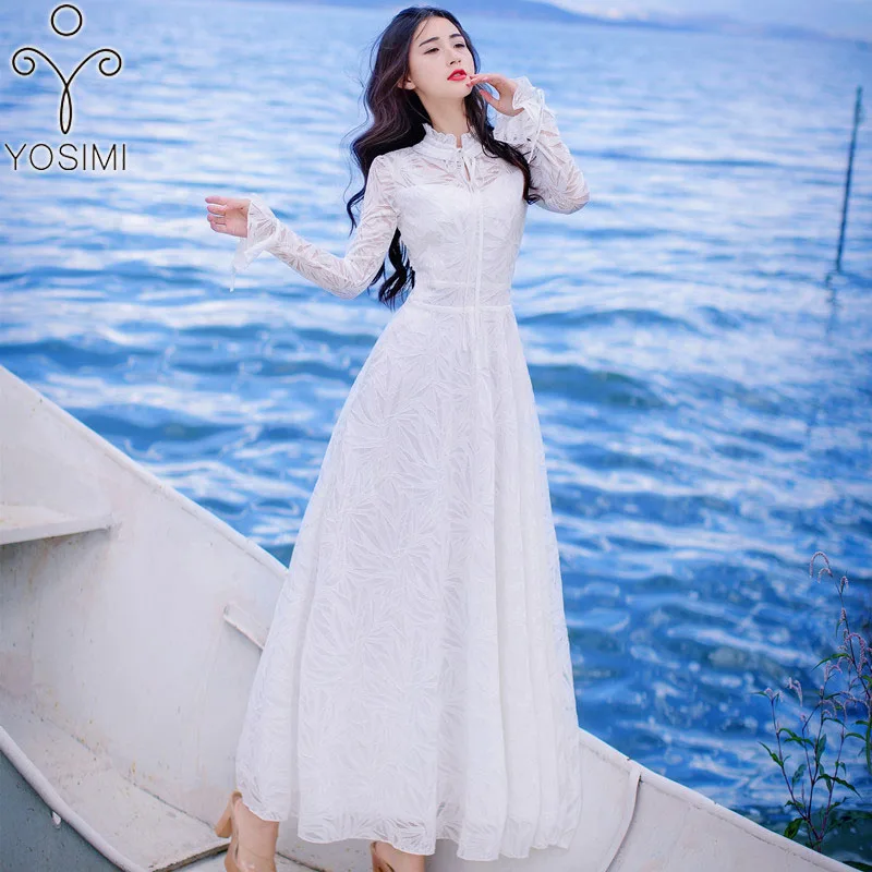 Yosimi Longue Robe En Dentelle Pour Femmes Manches Longues Tunique Tenue De Soiree Blanche Vintage Tenue Feerique Pour Femmes Ete 18 Aliexpress