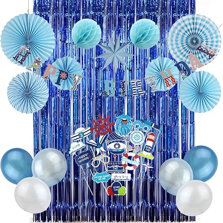 Easy Joy Decoration Marin Anniversaire Nautique Garcon Enfant Happy Birthday Kit Rideau Frange Bleu Photobooth Marin Amazon Fr Cuisine Maison