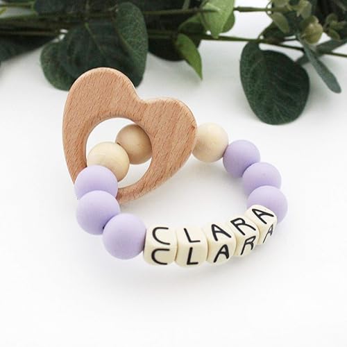 Hochet De Dentition Coeur En Perles En Bois Silicone Violet Parme En Perles En Silicone Bois Brut Personnalise Avec Le Prenom De Bebe Amazon Fr Handmade