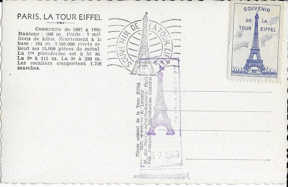 La Tour Eiffel Paris France Vintage 1948 Unused Real Photo Etsy