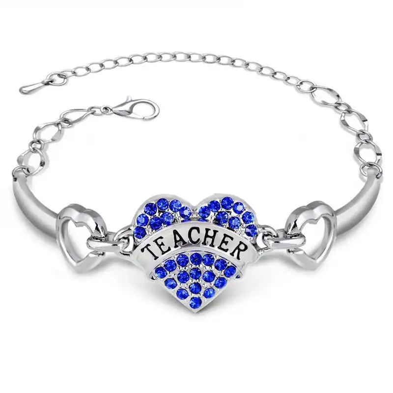 Diy Teacher Letters Bracelets Women Silver Crystal Rhinestone Heart Charm Bracelet For Teacher S Day Bracelet Femme Jonc Bracelets For Heart Charm Braceletcharm Bracelet Aliexpress