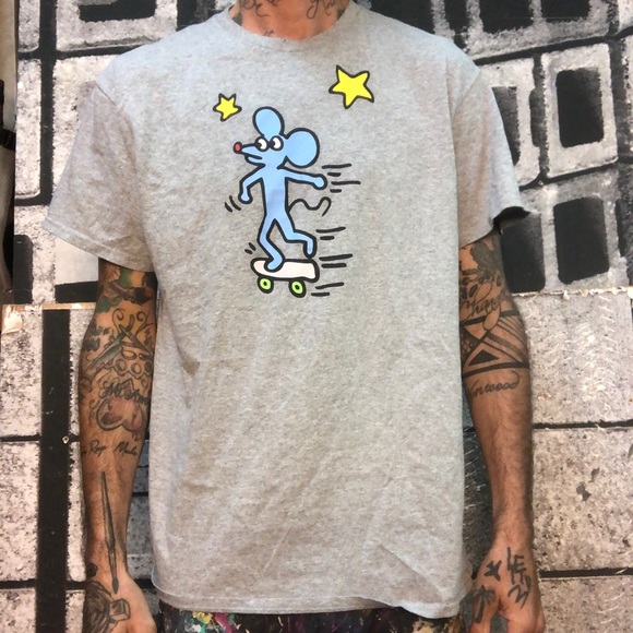 Keith Haring Skateboard Mouse Gray T Shirt Stars Artist Rare Authentic S Xl On T Shirts It Tee Shirts From Buysend 12 19 Dhgate Com