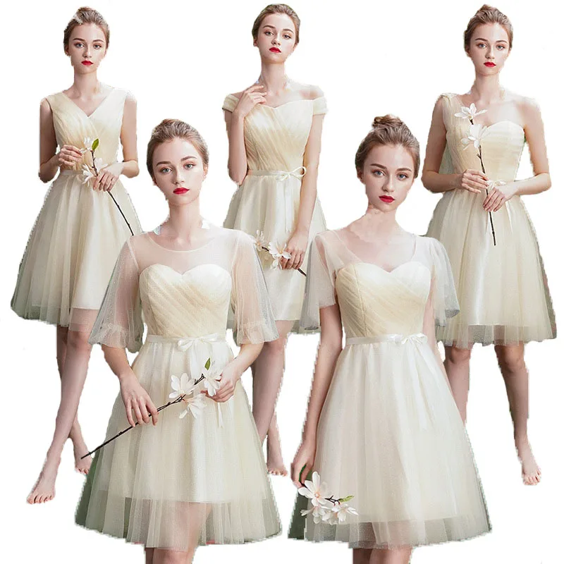 Champagne Robe De Demoiselle D Honneur Courte Mince Junior Robes De Demoiselle D Honneur Robe Elegante Femmes Pour La Fete De Mariage Vestido De Fiesta De Boda Aliexpress