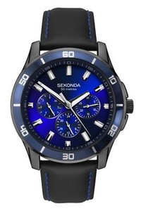 Sekonda Minuit Bleu Homme Cuir Noir Bracelet Montre 1634 Ebay