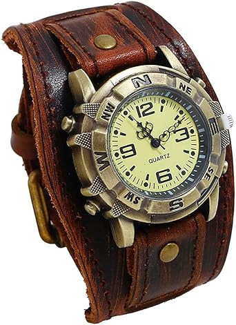 Montres Vintage Punk Rock En Alliage De Peau Vache Bracelet Montre A Quartz Analogique Grand Large Cuir Manchette Hommes Retro Avec Boucle Boucles Simples La Mode Pwtchenty Amazon Fr Montres