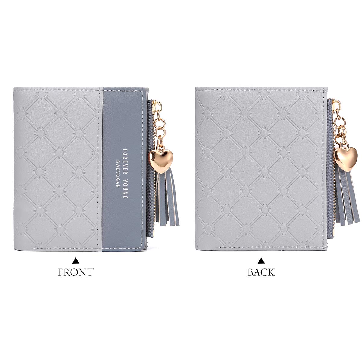 Bourse pour Femme en Cuir PU Lisse et Souple PorteMonnaie Dames Petit et en Format Court Portefeuille Femmes dans de très Belles Couleurs avec de Nombreux sujets (Gris, S).