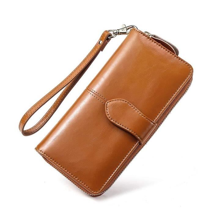 Portefeuille Femme Souple Cuir Porte Monnaie Longue Carte De Credit Organisateur Titulaire Huile De Cire Brune Bibi Beaute Com