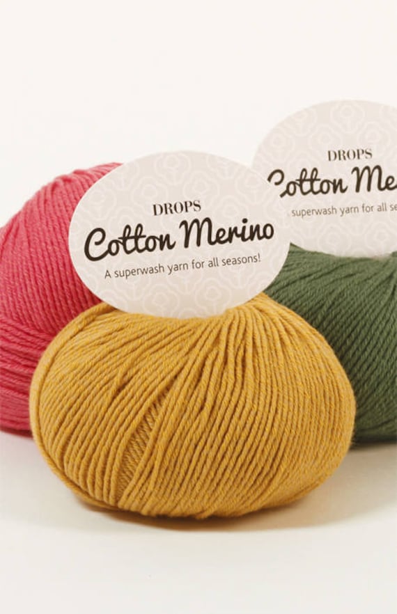 DROPS Cotton Merino lanka on kehrätty korkealaatuisesta merinovillasta ja kauniista, pitkäkuituisesta puuvillasta Lanka on kehrätty useista ohuista säikeistä, jolloin langasta tulee ihanan pehmeä, täyteläinen ja joustava Lanka sopii varsin hyvin palmikko, koho ja helmineuleisiin. Well you're in luck, because here they come There are 112 drops cotton merino for sale on Etsy, and they cost $429 on average The most common drops cotton merino material is wool The most popular color?. DROPS Cotton Merino lanka on yhdistelmä extra fine merinovillaa ja pitkitä puuvillakuituja Olemme päättäneet, että merinovillaa ja puuvillaa ei karstata yhteen Tämän ansiosta kuitujen kaikki ominaisuudet pääsevät paremmin esiin ja väreistä ja rakenteesta tulee elävämmät Myös tämän merinolankamme merinovilla tulee EteläAmerikan vapaasti liikkuvista eläimistäLanka on.