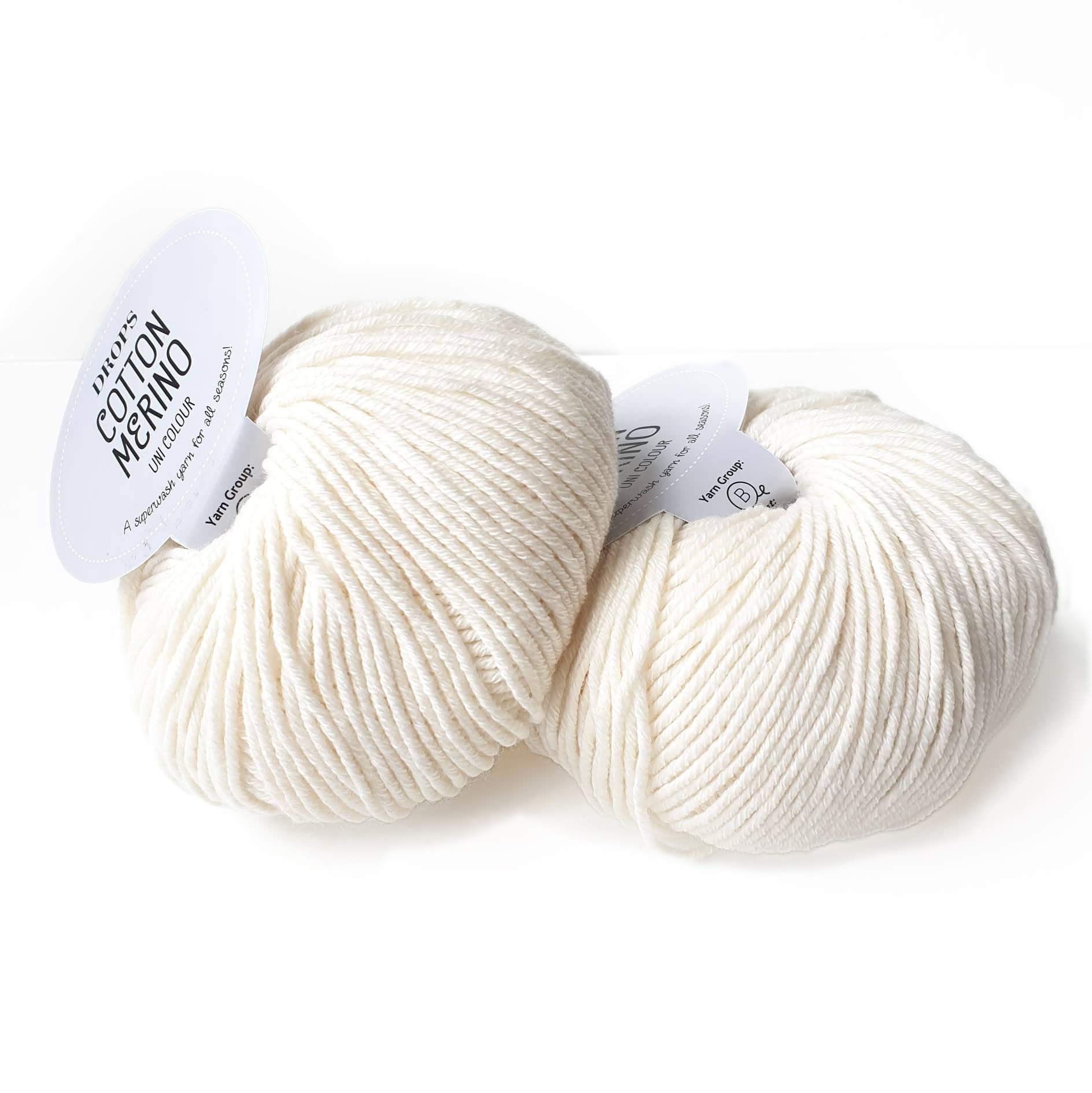DROPS Cotton Merino Cotton and Merino Wool Blend Yarn 1yds/110m 18oz/50g Super Wash Merino Yarn for Baby Worsted Weight Yarn Group B. Superwash 100% Merino Wool Yarn for Knitting and Crocheting, 3 or Light, DK, Leight Worsted Weight, Drops Merino Extra Fine, 18 oz 115 Yards per Ball (31 Forest Green). DROPS Cotton Merino is a combination of extra fine merino and long cotton fibers We have chosen not to card the merino wool and the cotton together, which highlights each of the fibers properties in a better way, while at the same time allows to achieve more vibrant colors and textures And as in all our merino yarns, the merino wool originates from freerange animals in South America.