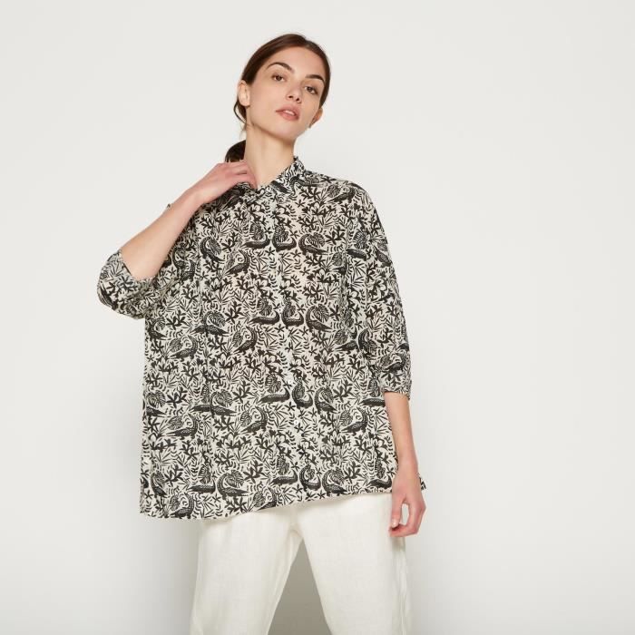 Chemise En Voile De Coton Imprimee Blanc Achat Vente Chemise Chemisette Cdiscount