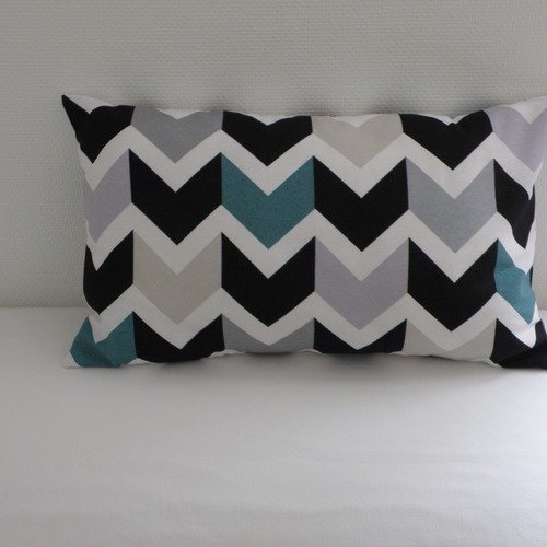 Housse De Coussin Rectangulaire Tissu Chevrons Noirs Beiges Gris Argent Blancs Et Bleus Un Grand Marche