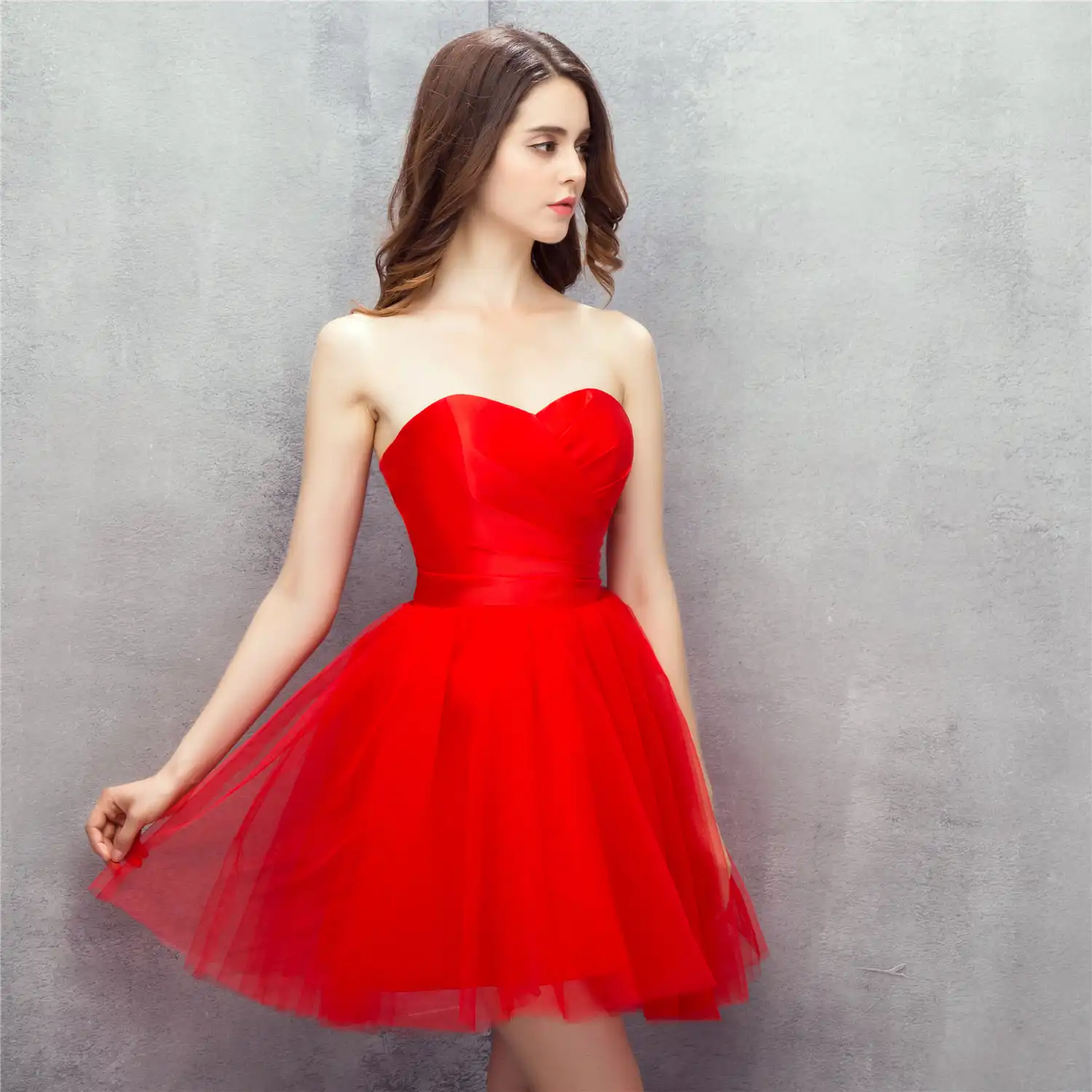 Simple Robe De Soiree Rouge Courte Col En V Robe De Soiree Rouge Style Europeen Robe De Soiree