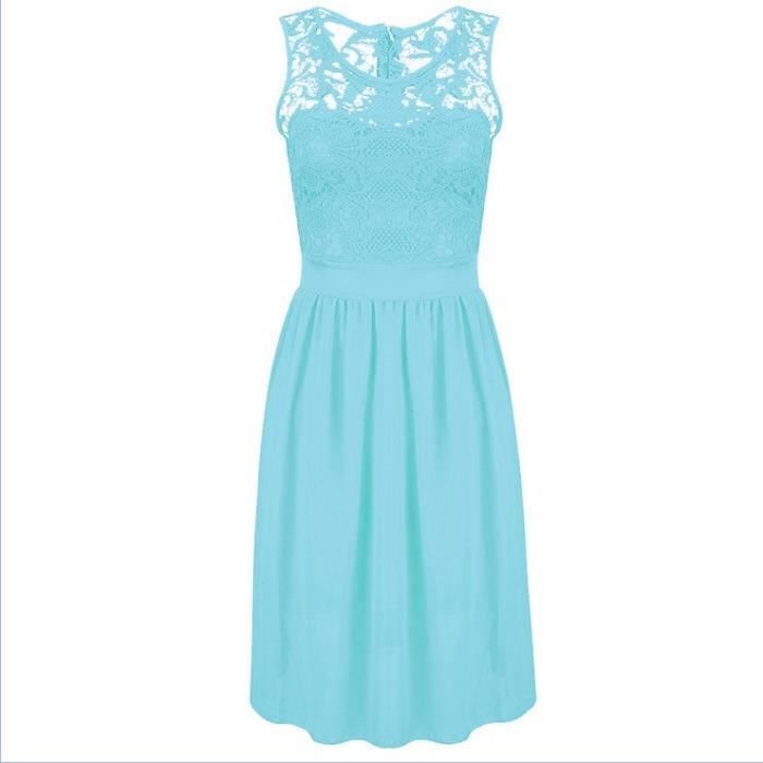 Robe Courte Femme Chiffon Mousseline Avec Dentelle Grande Taille Sans Manches Simple Flavor Bleu Achat Vente Robe Cdiscount