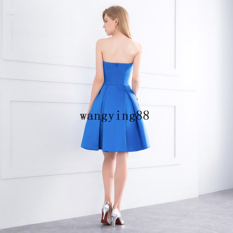 Robe De Soiree Courte Simple Satin Strapless Blue Homecoming Dress With Pockets For Teen Juniors Graduation Prom Gown White Homecoming Dresses Under 50 White Lace Homecoming Dress From Wangying 48 25 Dhgate Com