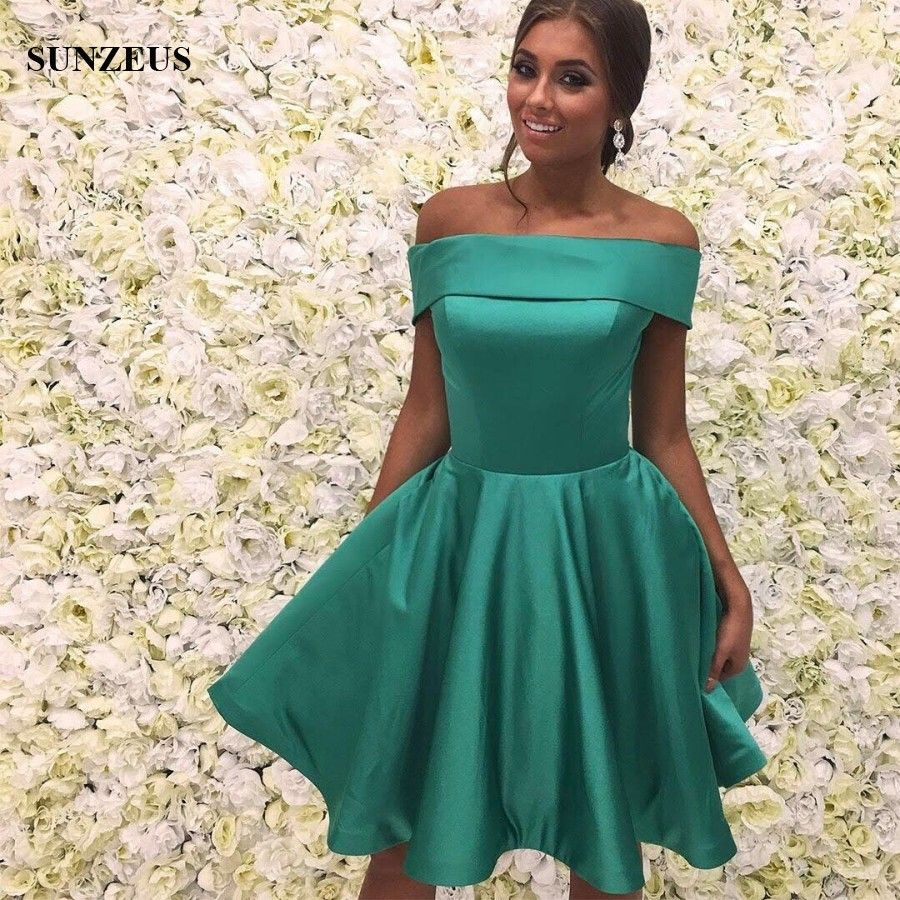 Acheter Bateau Cou Hors Epaule Robe Courte De Retour Simple Fuchsia Satin Robes De Soiree Pour Les Filles Robes De Bal Robe Courte De 91 9 Du Sunzeusdress Dhgate Com