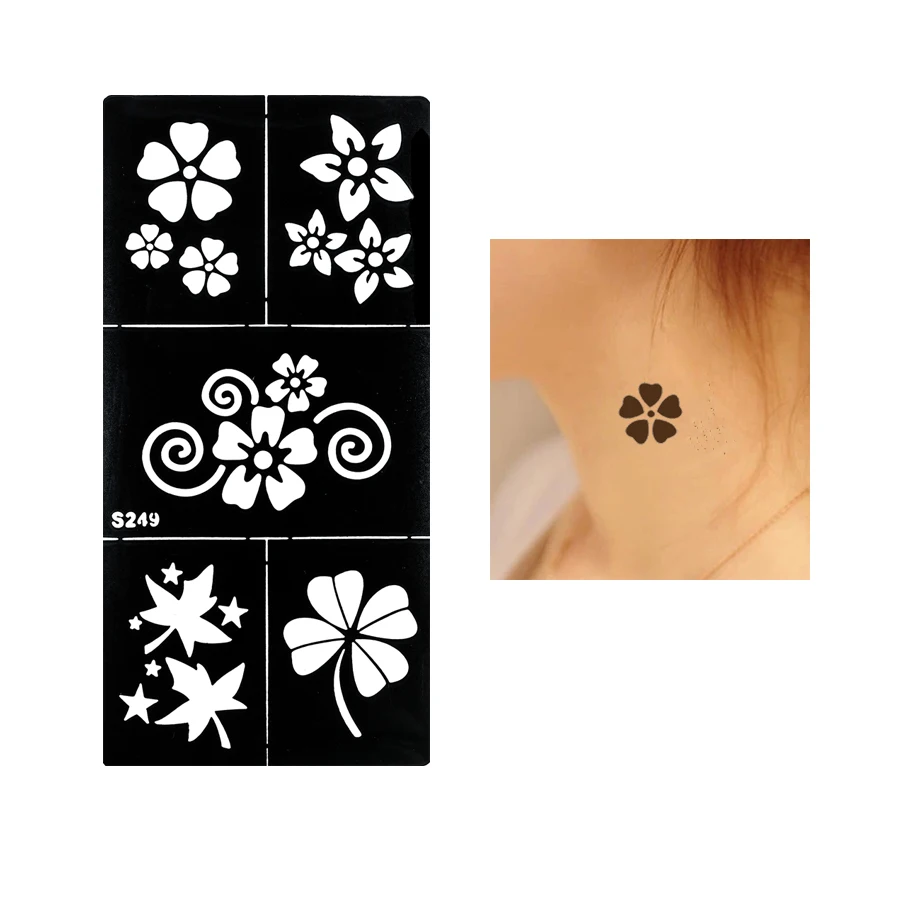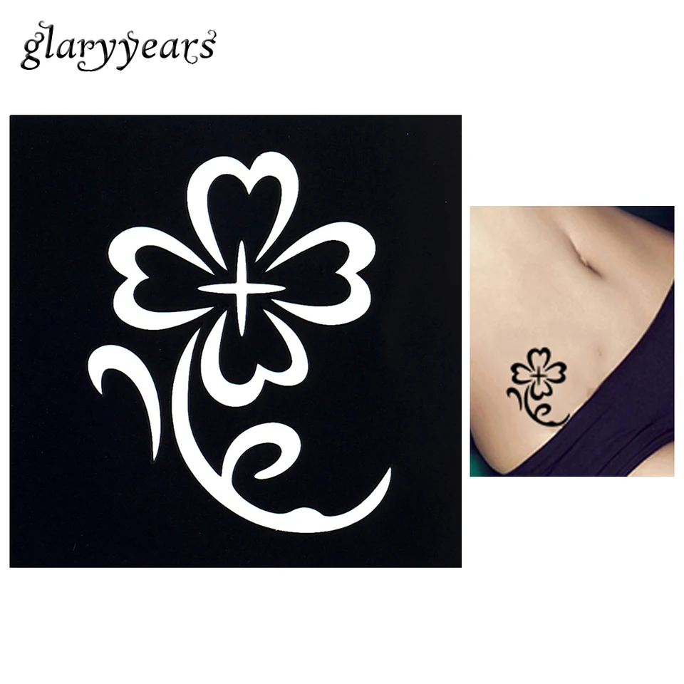 1 Piece Tatouage Pochoir Henne Noir Impermeable Temporaire Trefle A Quatre Feuilles Fleur Tatouage Design Pour Les Femmes Body Art Tatouage Autocollant S249 Aliexpress