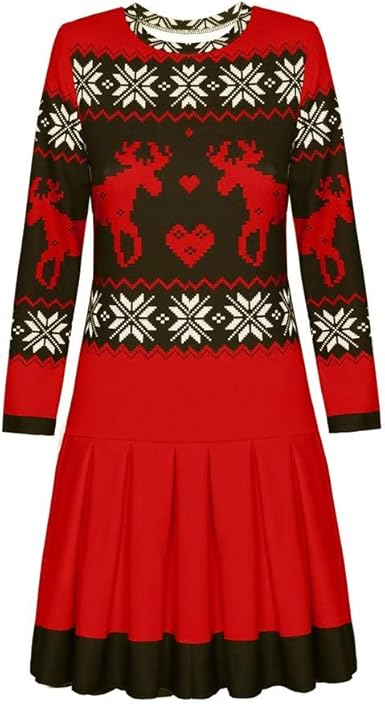 Skang Noel Pull Long Femmes Fille Imprime Motif De Renne Cerf Mini Dress Mode Christmas Print Manches Longues Casual Rouge Robe De Noel Pull Long Hiver Chaud Amazon Fr Vetements Et Accessoires