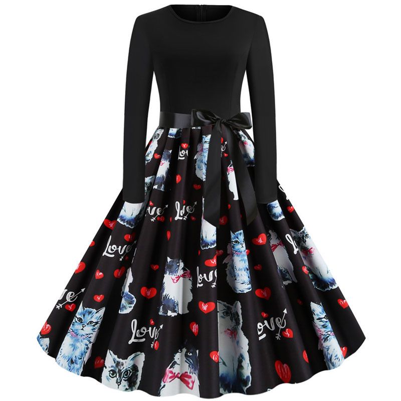 Robe Noel Femme Winter Dresses Women Long Sleeve Print Vintage Pinup Rockabilly New Party Valentine Dress Black Vestido 3xl Beaded Dresses Ball Dress From Reback10 19 5 Dhgate Com