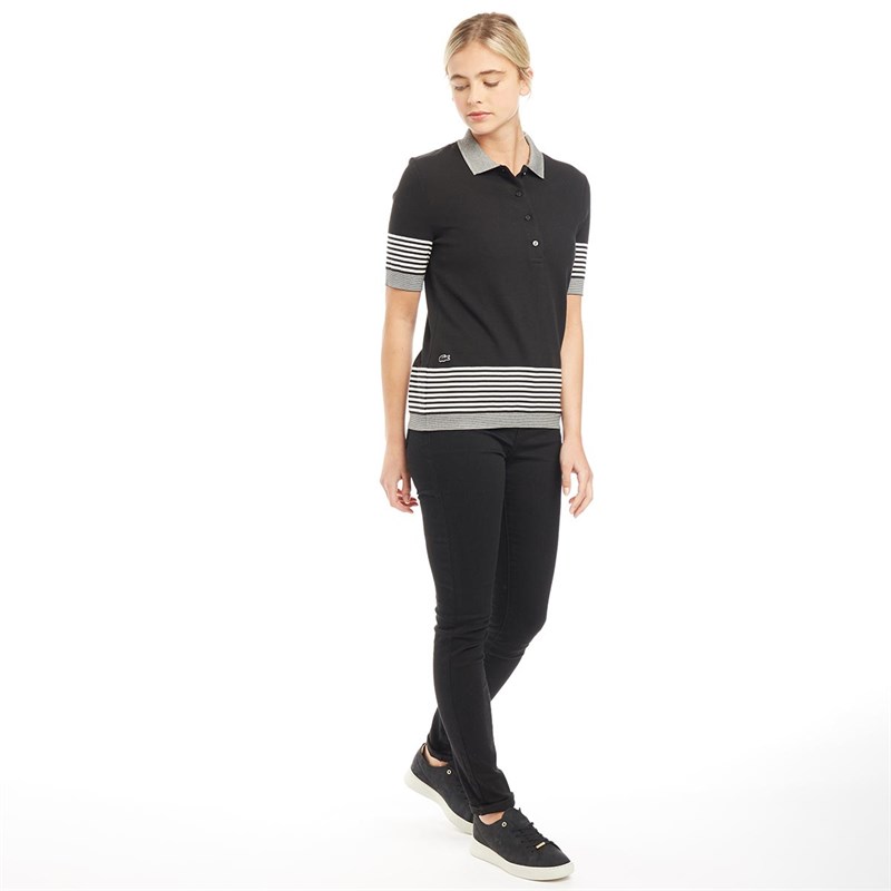 Lacoste Women S Stretch Cotton Pique Polo Noir 34 M2 Boutiques