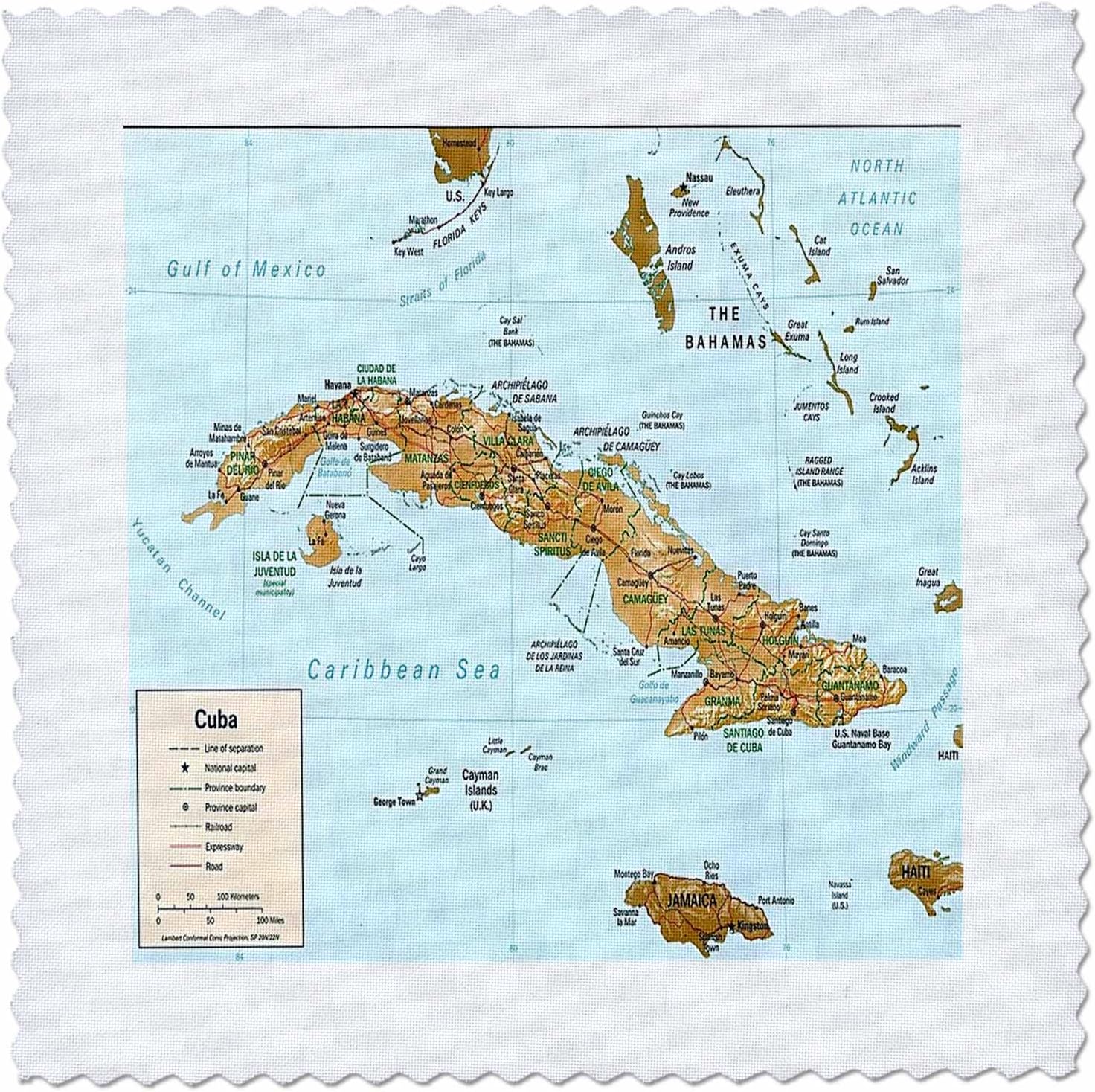 Amazon Com 3drose Print Of Map Of Cuba Quilt Square 6 By 6 Inch Qs 5044 2