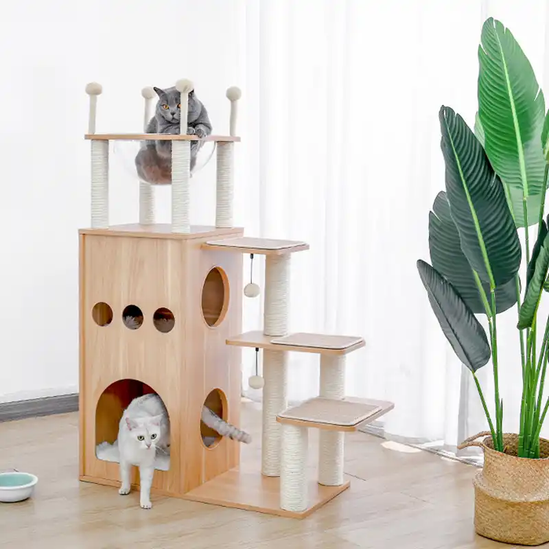 Eono Essentials Deluxe Petit Arbre A Chat En Bois Naturel Arbre A Chat Design Et Moderne Grand Maison Niche Spacieux Pour Chat Chaton 98 5cm Amazon Fr Animalerie