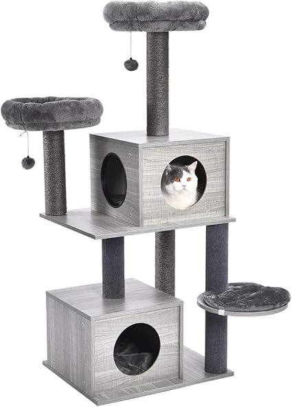 Pawz Road Arbre A Chat Moderne En Bois Avec 2 Grands Condos Poteaux A Griffoir Boules Pendantes Et Perchoirs Doux 55 Pouces Amazon Ca Animalerie
