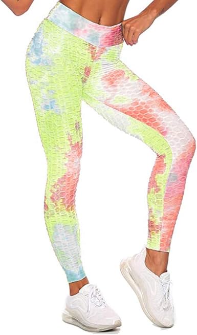 Legging Sport De Yoga Femme Taille Haute Sexy Chic Imprime Colore Tie Dye Plis Fitness Elastiques Push Up Fesse Pantalon Sportwear Confortable Et Respirant Amazon Fr Vetements Et Accessoires