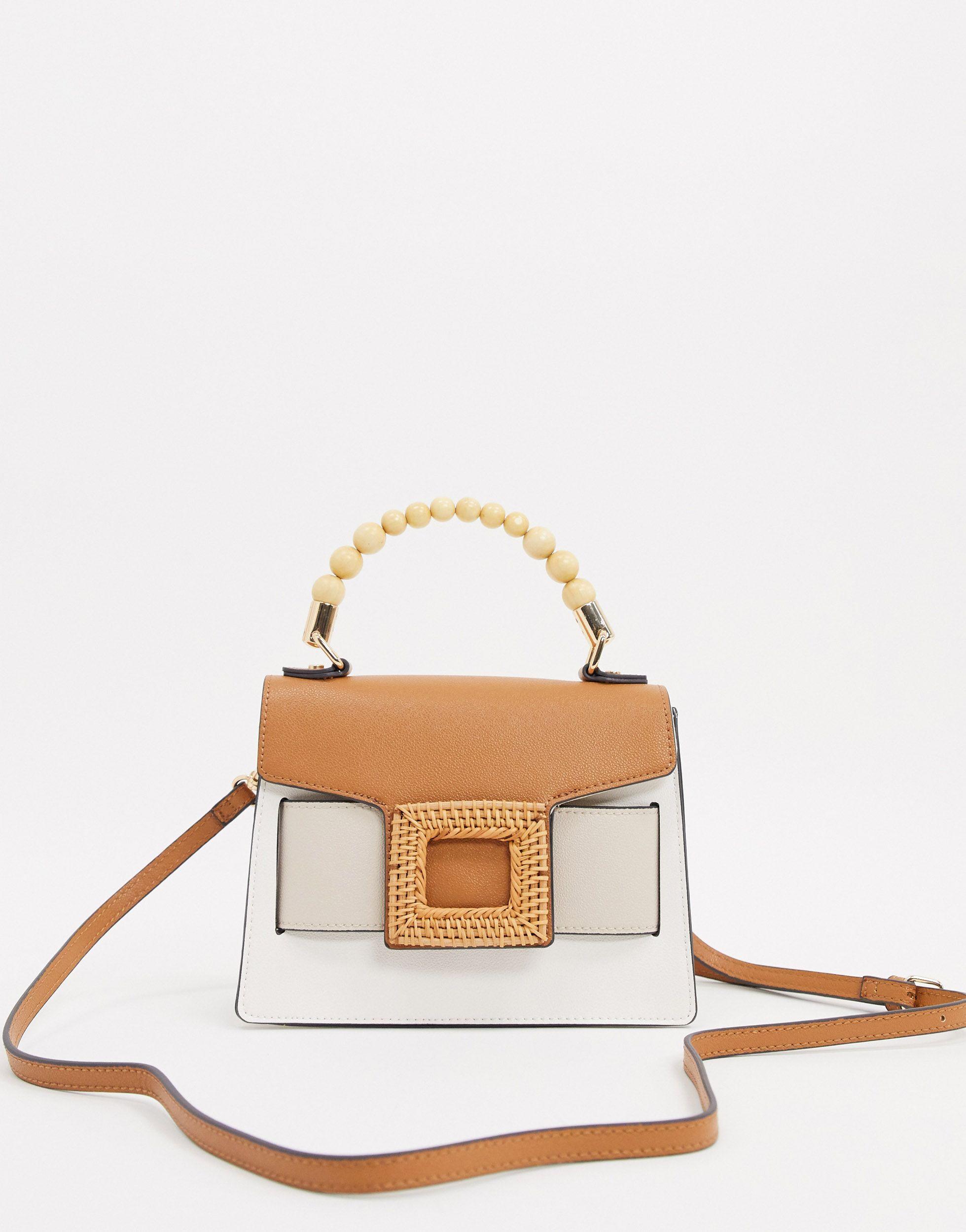 Asos Design Sac Porte Main Triangulaire En Bambou Avec Anse En Perles Et Bandouliere Amovible Marron From Asos On 21 Buttons
