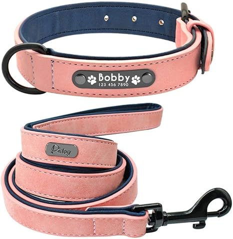 Collier Pour Chien Rembourre Personnalisable Et Laisse Reglable En Cuir Par Berry Amazon Fr Animalerie