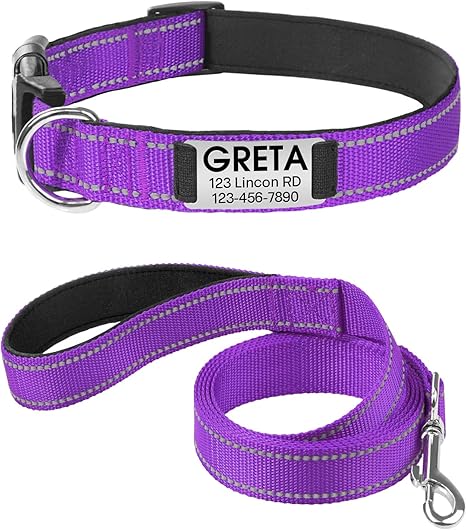 Joytale Laisse Et Collier Pour Chien Personnalise Collier Chien Grave Avec Nom Reflechissant Laisse Pour Tailles Petite Moyenne Ou Grande Violet Amazon Fr Animalerie