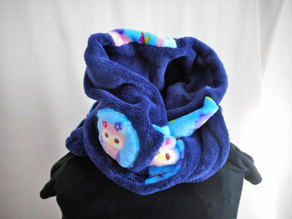 Double Snood Femme Homme Echarpe Circulaire Hiver Polaire Bleu Marine Et Chouettes Tour De Cou Double Tours Un Grand Marche