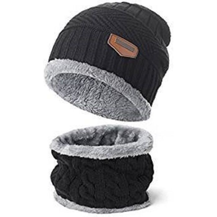 Bonnet Hiver Chapeau Beanie Echarpe Tour De Cou Doublure Polaire Tricot Pour Homme Femme Unisexe Chaude