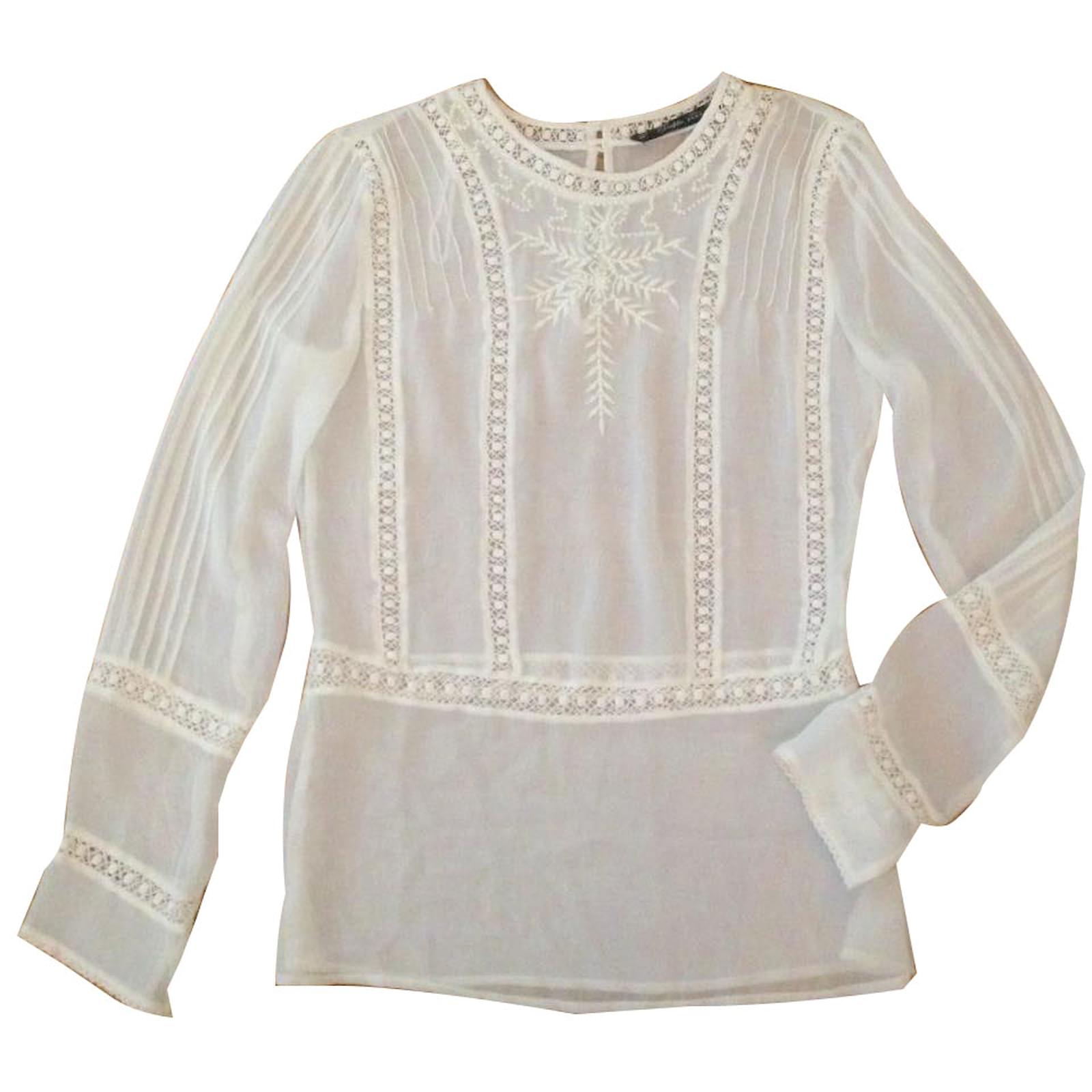 Haut Blouse Blanc Zara Avec Dentelle Ts Vinted