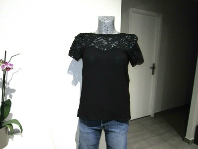 Blouse Haut Zara Satin Noir Et Manches Dentelle Transparente Taille S 36 Ebay