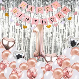 36 Pieces Ballons Anniversaire Rose Gold Latex Deco Anniversaire 1 An Avec Confettis Decoration Anniversaire Happy Birthday Kit Party Soiree Fete Pour Bebes Filles Amazon Fr Jeux Et Jouets