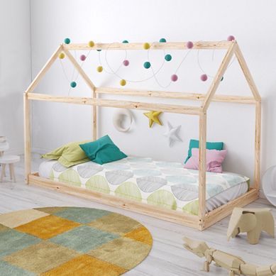 Lit Cabane Maison Bois Naturel 80x160 Cm