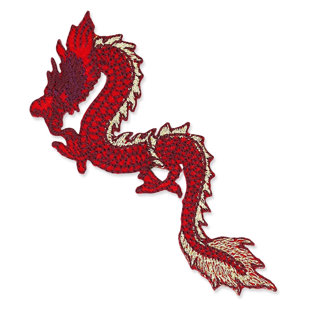 Ecusson Thermocollant Dragon Chinois Coloris Rouge Et Blanc 3 X 8 Cm