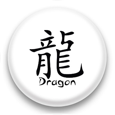 Badge Bouton 25mm Signe Chinois Dragon